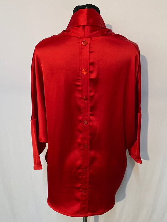 Button Back Satin Loose Turtleneck